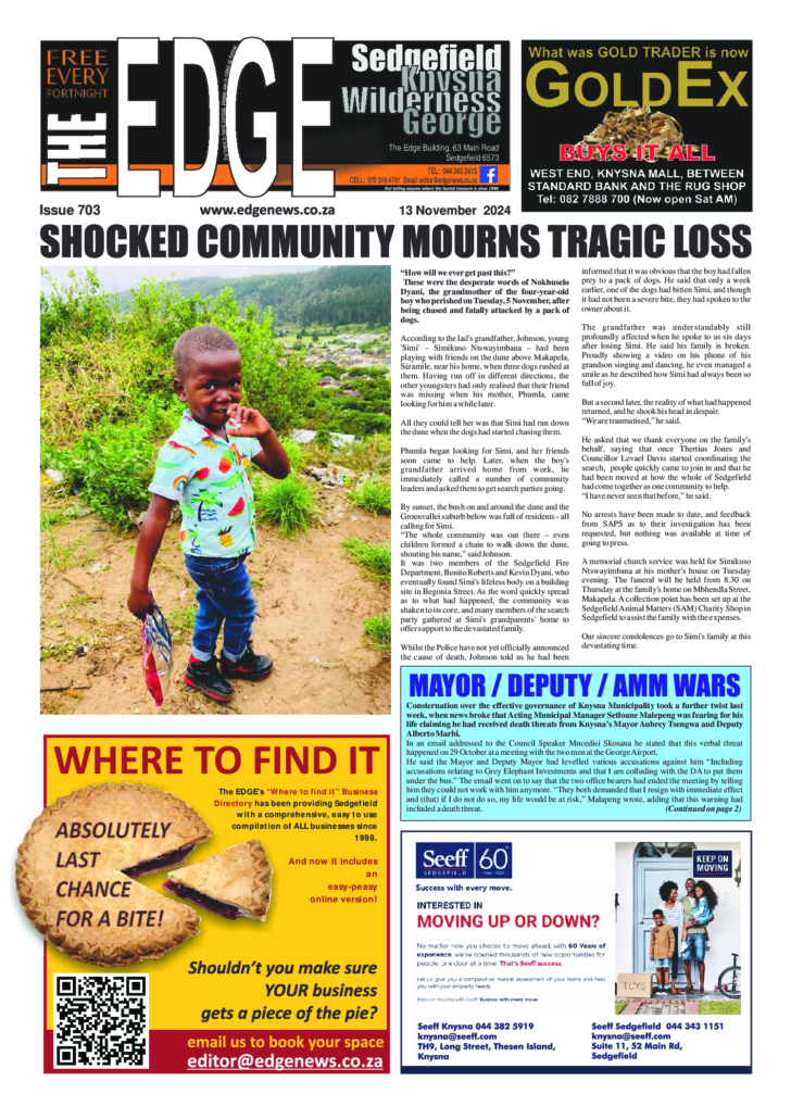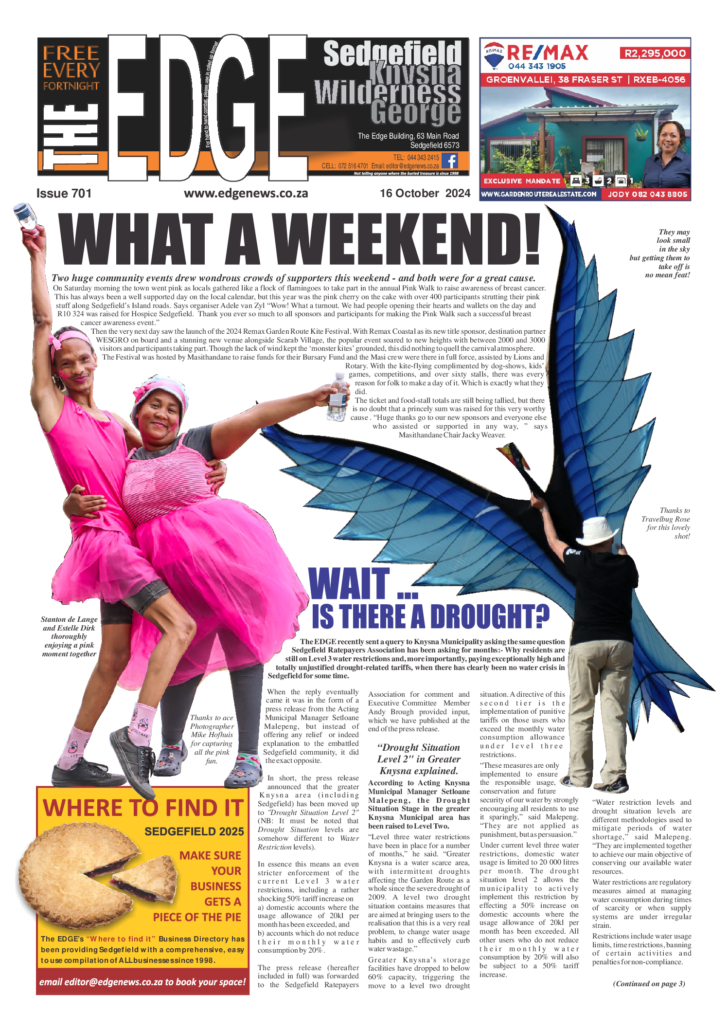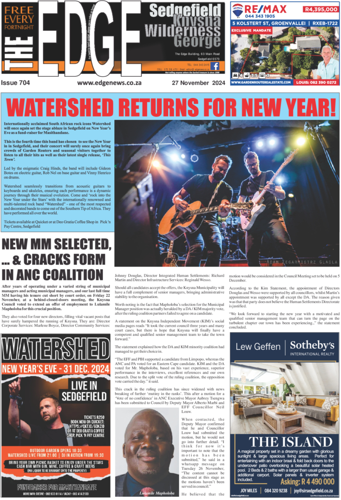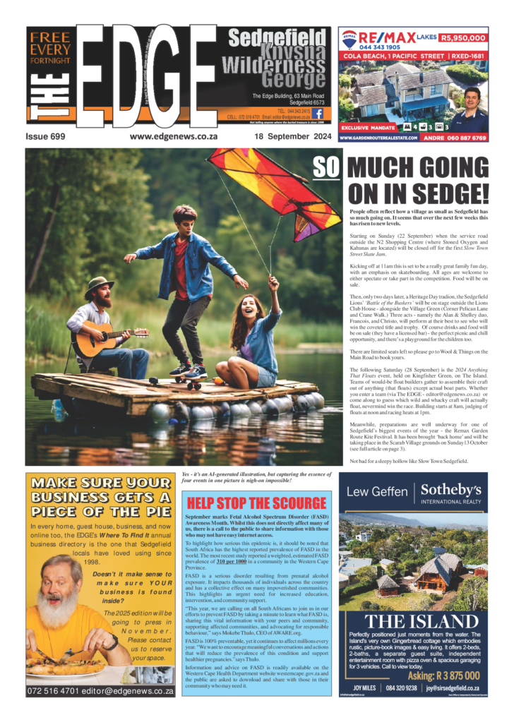 MASITHANDANE'S 'ANYTHING THAT FLOATS' MAKES A SPLASHThis year's Anything That Floats, held on Saturday, 28 March on Fish Eagle Green, was once again a day of raucus fun, ingenuity, chaos, incredulity, water, sunburn, laughter, genius, failure, entertainment, idiocy, more water, prizes and a general lack of engineering ability. A huge thank you to all the teams who took part: The two Sedgefield Scout teams - 'Loki' and 'Odin's Hammer', the Roos Family's 'Snow White', Forest Roots 'Green Machine', Sedgefield Lions' one-man entry 'The Otter', and the motley crew on the EDGE's craft - 'SS Mild Fury'. Every one of these teams certainly put 'All hands on deck' to ensure the crowds gathered on the shore to watch/laugh/point fingers/shake their heads in disbelief were not disappointed.This year there was, disapointingly, no absolute failures (yes - even the EDGE's craft stayed afloat) so the wonderful folk from NSRI who kept an eye on proceedings did not have to perform any serious rescues.When the brilliant MC Cornel Delafield began the prize-giving ceremony, the overall winners on the day were the never-say-die crew members of Odin, who snatched victory from the 'Snow White' team after one of the dwarves left his beard floating in the lagoon. This, according to the judges, broke the ATF's all-important 'Leave Nothing Behind' code of ethics, costing the seven little fellows and their team's namesake valuable points and pushing them back to second place.Numerous other prizes were awarded, so the over-achievers, under-performers, suspected mushroom embibers and suspiciously political campaigners in the other teams all went home with the sense that their floating craftmanship had been appreciated.A number of businesses and individuals came to the party to support this community event - huge appreciation to Brian Groom of Fish Eagle Financial Services and Andy Brough & family for the donation of R1000 each for the cash prize given to the overall winners, and to prize donors Pili Pili Sedgefield, Pick n Pay Sedgefield, Kraaibosch Shell, MacButners, Kahunas, Harry's, Stoned Oxygen Pty Ltd.Also thanks to the folk from Sedgefield Animal Matters, who were present and even paid the entry fee, despite not having a craft taking part.Thanks to the four judges (names withheld due to accusations of bribery and corruption currently under investigation), Mike Hofhuis and Brian Groom for capturing the antics with their cameras, Safety Officers Michael and Mike for ensuring we were absolutely safe from any pending disaster, and the amazing Masithandane Team who helped with applications, gathered prizes, manned the food stall and generally organised 'stuff'.See you all next year! ... See MoreSee Less