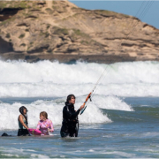 Heinrich, who was on the beach, noticed the commotion and rushed to fetch his kiteboarding equipment from his car. Then, launching into the water, he managed to reach them while under sail. The older girl grabbed onto his board and, still using the rescue buoy for floatation, kept hold of her schoolmate whilst the kite-surfer towed them back to the beach.