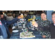 Picture: Knysna Municipal Manager Dr Sitembele Vatala, Director Planning & Economic Development Marlene Boyce and Knysna Executive Mayor, Mark Willemse toasting the 36th Knysna Oyster Festival.
